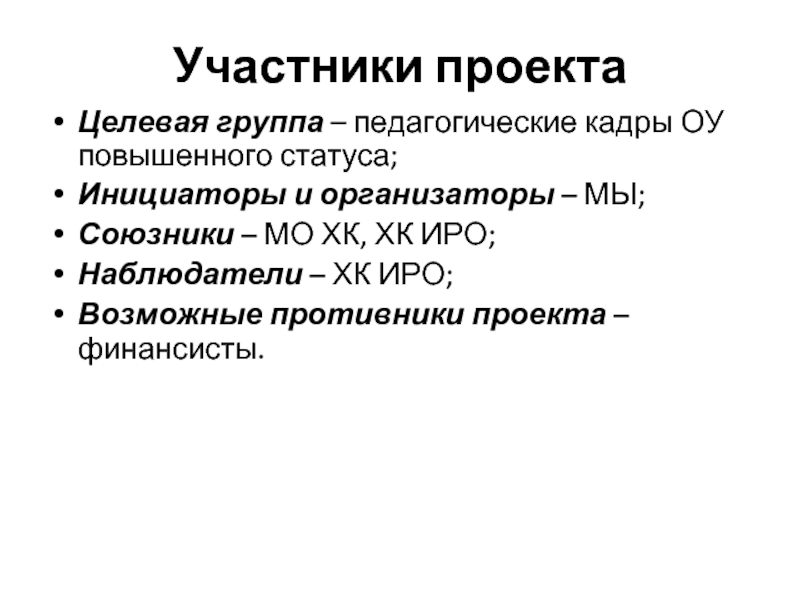 Целевая группа – педагогические кадры ОУ повышенного статуса;