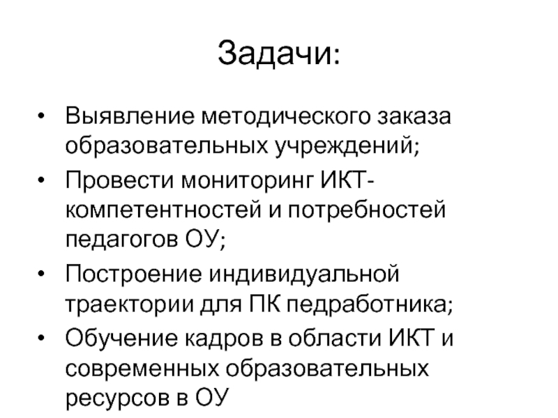 Провести мониторинг ИКТ- компетентностей и потребностей педагогов