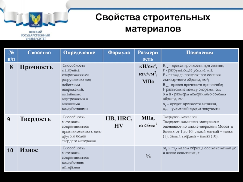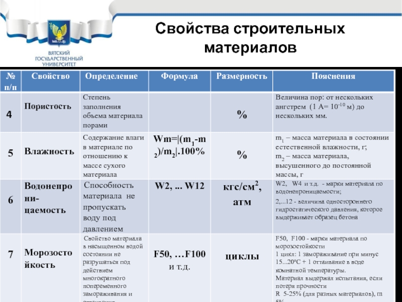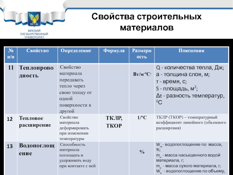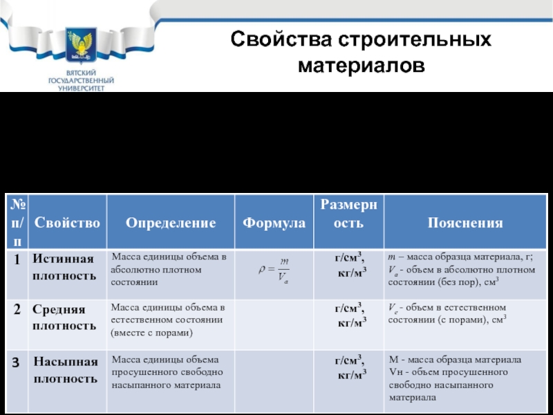 Слайд 14Свойства строительных материалов