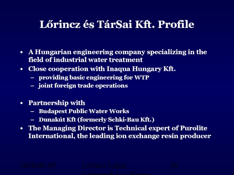 A Hungarian engineering company specializing in the field of industrial water treatment