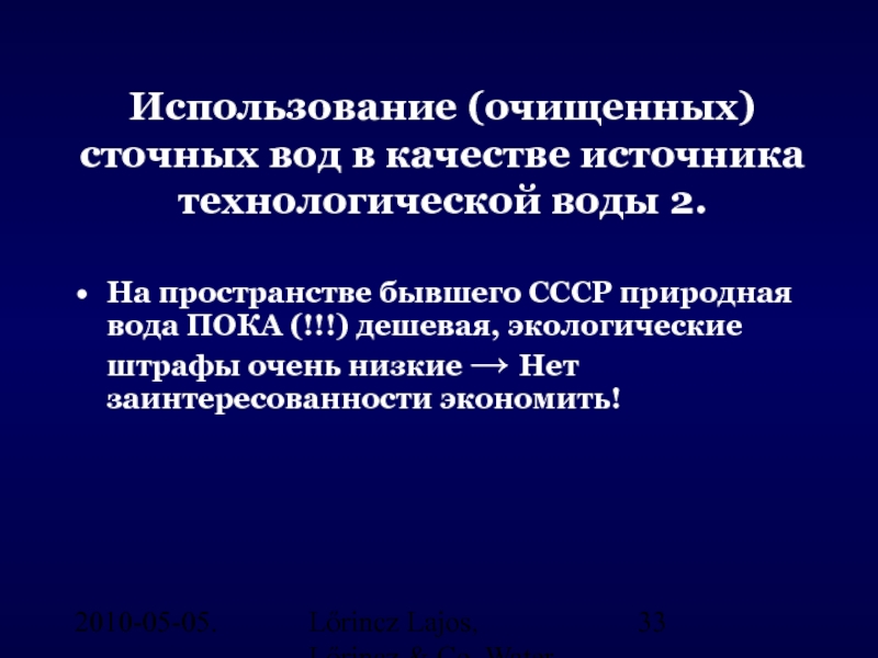 На пространстве бывшего СССР природная вода ПОКА (!!!) дешевая, экологические штрафы очень низкие → Нет заинтересованности экономить!