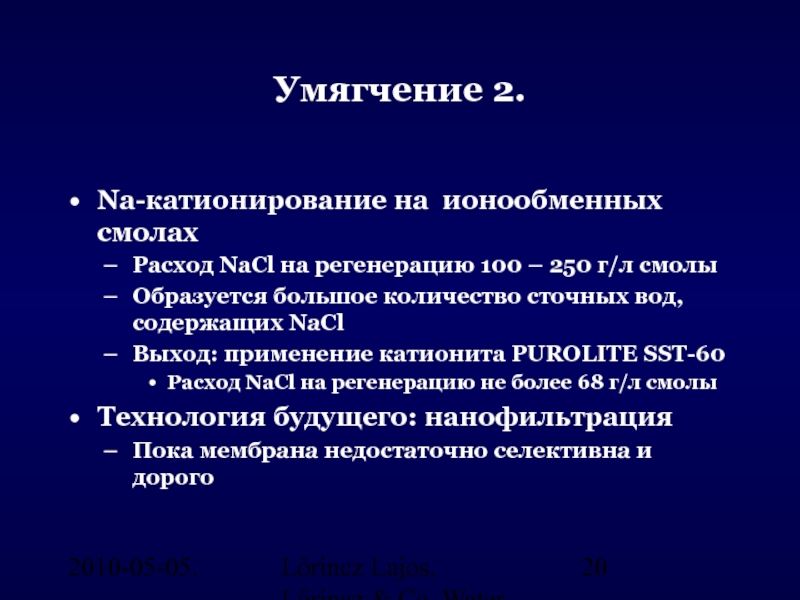 Разница концентраций некоторых компонентов двух вод, скорее всего, вызвана реагентами для регенерации ионообменных смол