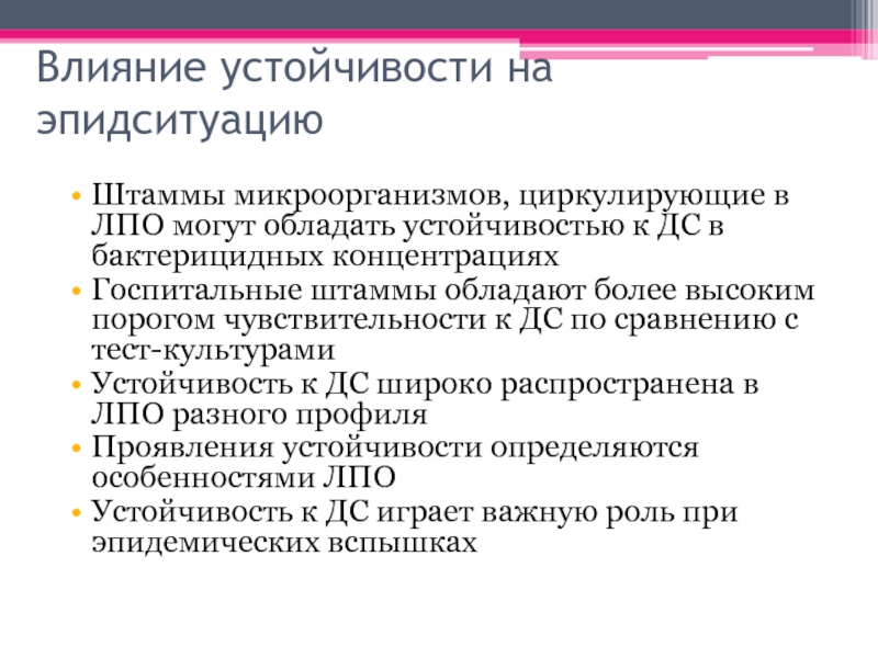 Состояние чувствительности микрофлоры ЛПО к ДС
