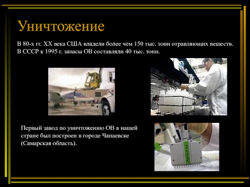 Первый завод по уничтожению ОВ в нашей стране был построен в городе Чапаевске (Самарская область).