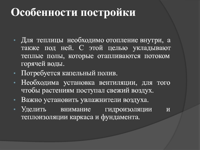 Слайд 9Отличительными особенностями современных теплиц являются:
