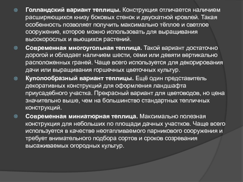 Слайд 8Современные варианты теплиц и парников обладают достаточно простыми, но в то