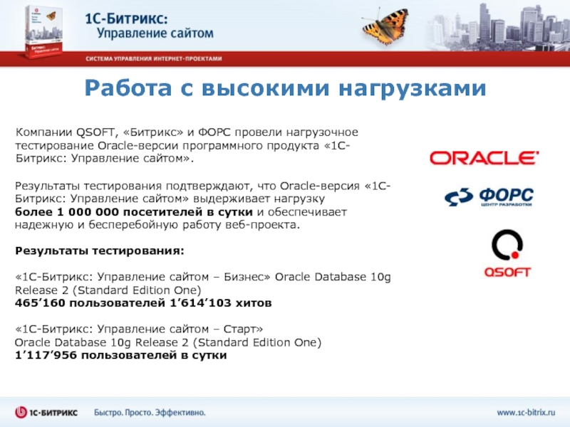 Компании QSOFT, «Битрикс» и ФОРС провели нагрузочное тестирование Oracle-версии программного продукта «1С-Битрикс: Управление сайтом».