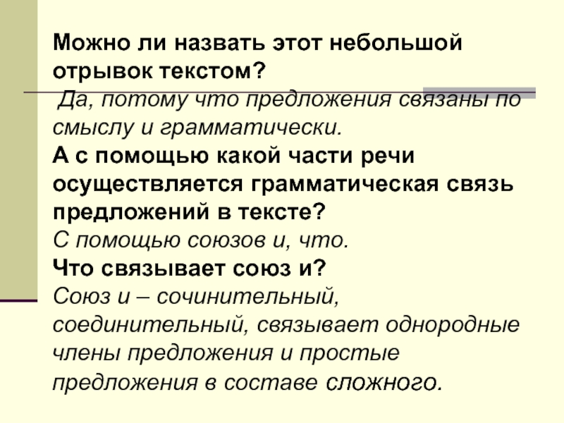 Слайд 7Можно ли назвать этот небольшой отрывок текстом?