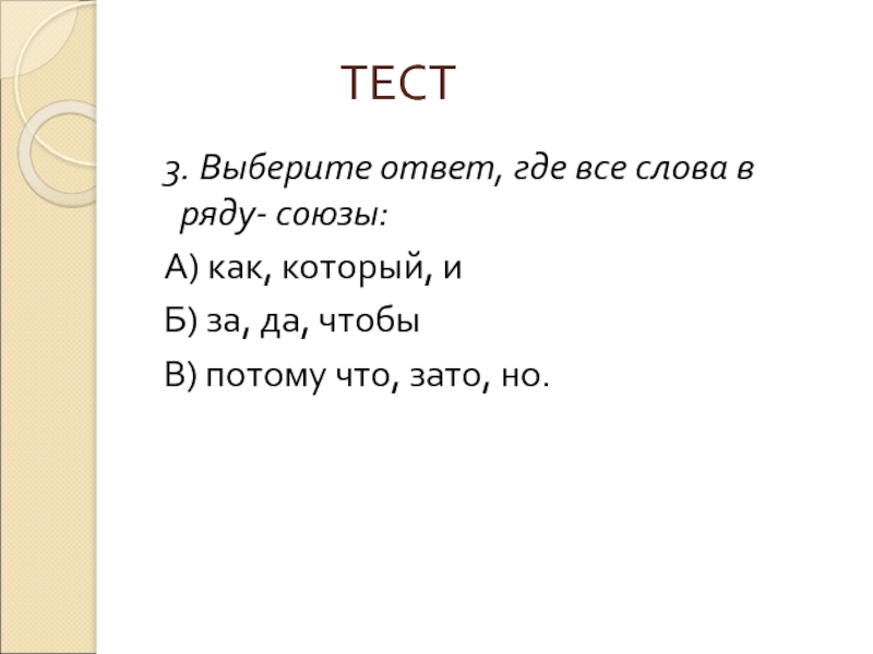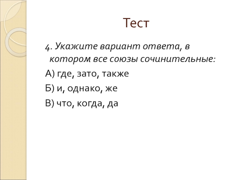 4. Укажите вариант ответа, в котором все союзы сочинительные:
