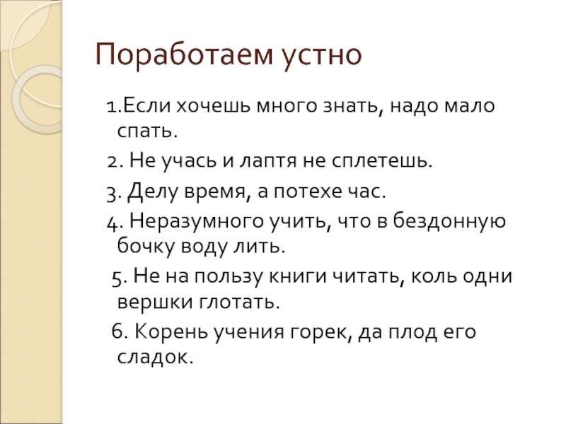 5. Не на пользу книги читать, коль одни вершки глотать.