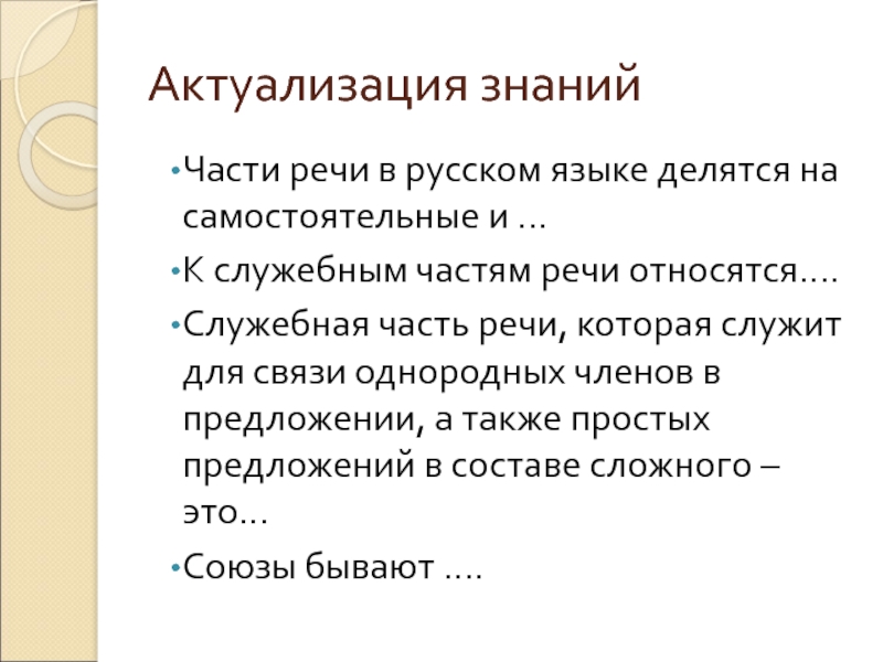 Служебная часть речи, которая служит для связи однородных членов в предложении, а также простых предложений в составе сложного – это…