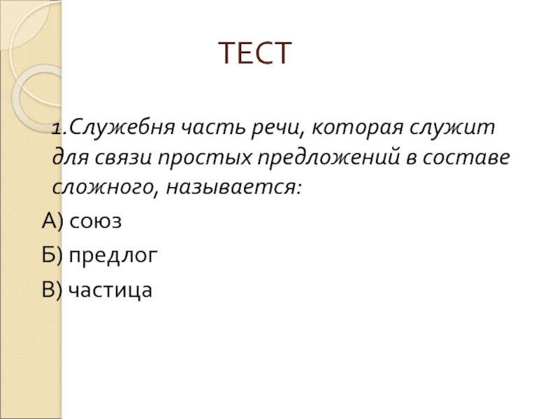 1.Служебня часть речи, которая служит для связи простых предложений в составе сложного, называется:
