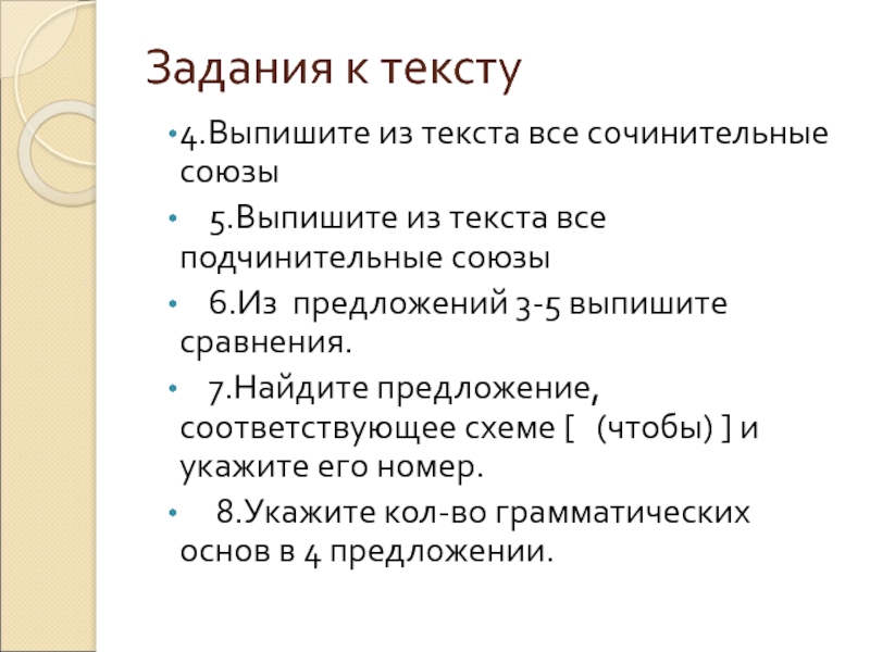 8.Укажите кол-во грамматических основ в 4 предложении.