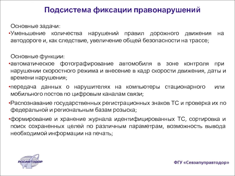 Слайд 5Основные функции системы направленные на повышение безопасности дорожного движения