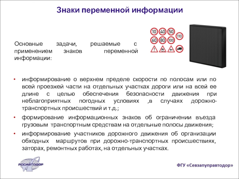 На информационное табло переменной информации, с целью обеспечения безопасности дорожного