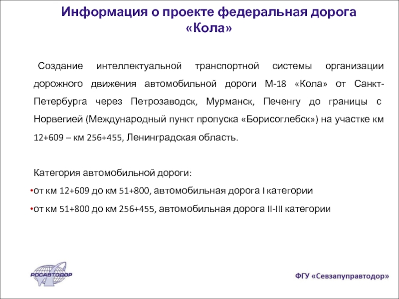 Слайд 3Информация о проекте федеральная дорога «Кола»