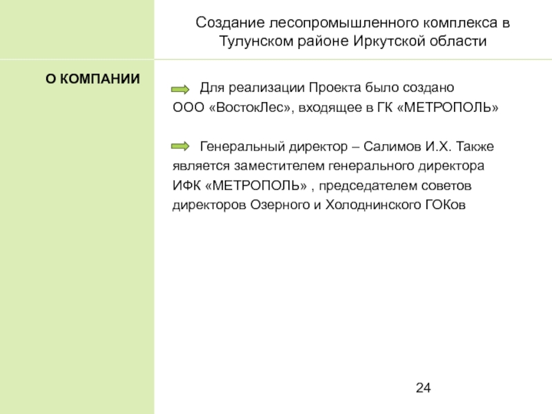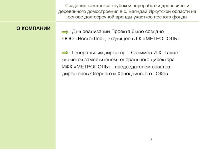 ООО «ВостокЛес», входящее в ГК «МЕТРОПОЛЬ»