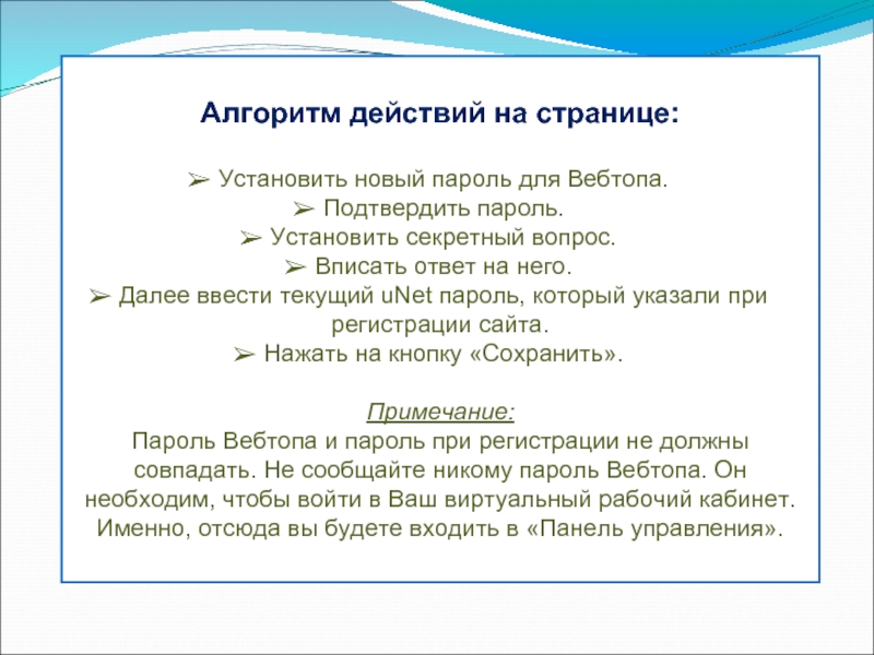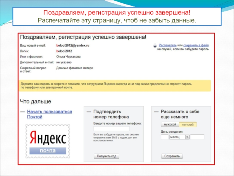 Выберите секретный вопрос. Внизу введите ответ на него.