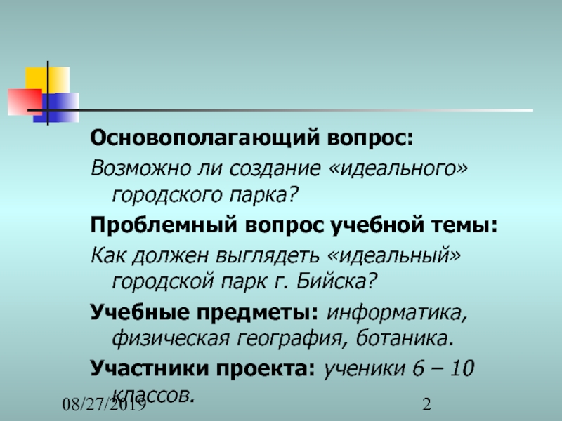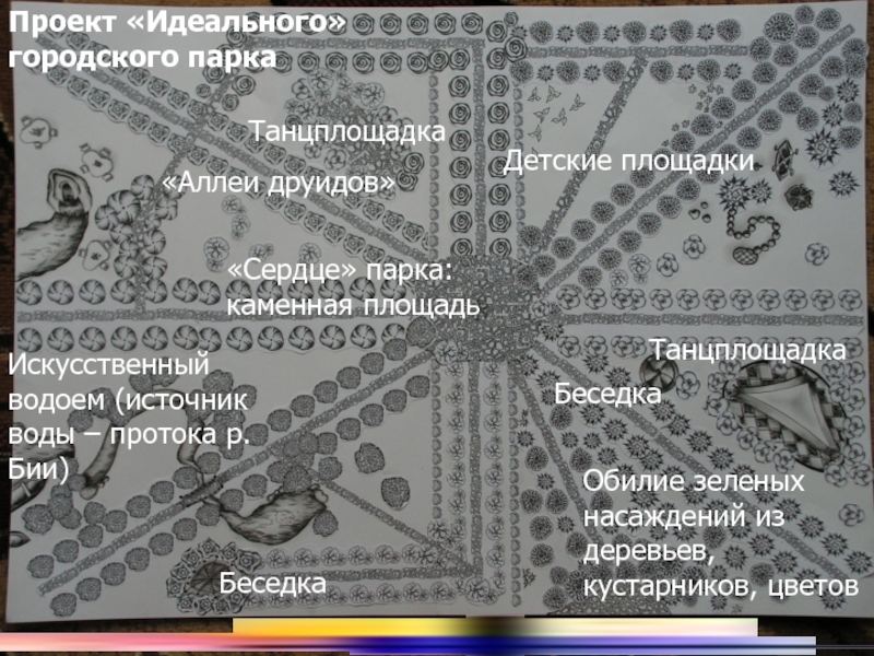 В результате учебного проектирования по разработке «идеального» городского парка, учащимися был предложен следующий план парка: