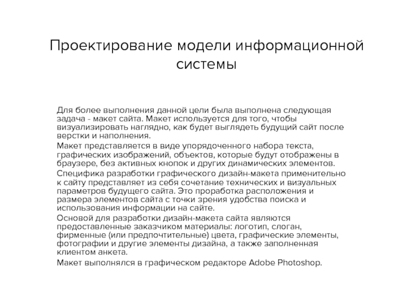 Макет представляется в виде упорядоченного набора текста, графических изображений, объектов, которые будут отображены в браузере, без активных кнопок и других динамических элементов.