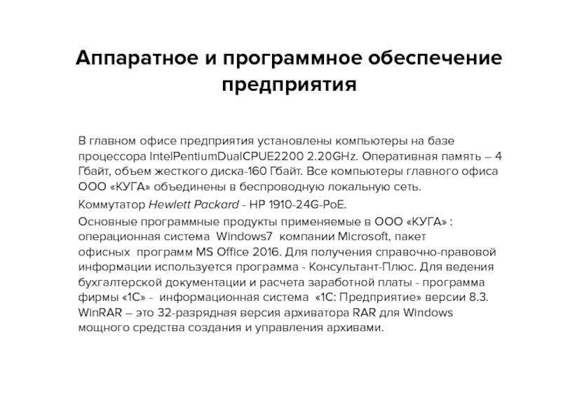 Слайд 4Аппаратное и программное обеспечение предприятия