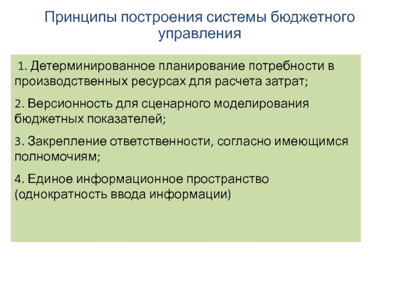 -Обеспечить систему бюджетного управления детерминированными данными;