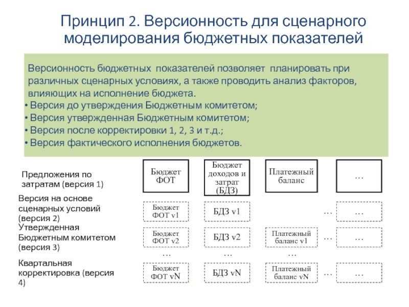 -Обеспечить версионность бюджетов, исходя из сценарных условий;