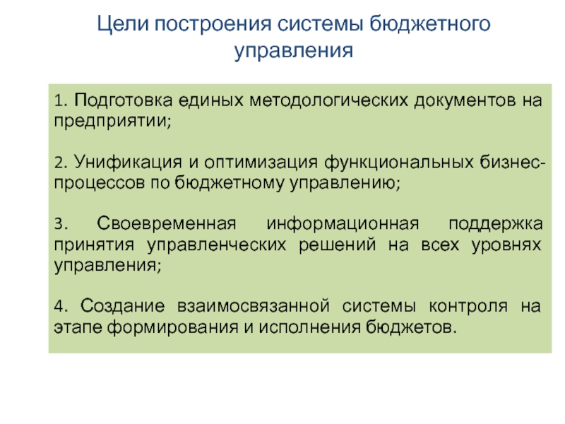 -Создать ролевую модель бюджетного управления, применяемую во всех структурных подразделениях;