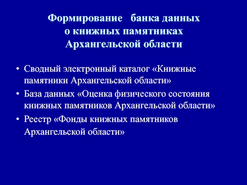 База данных «Оценка физического состояния книжных памятников Архангельской области»