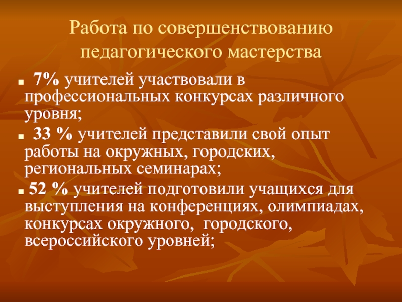 Слайд 4Работа по совершенствованию педагогического мастерства