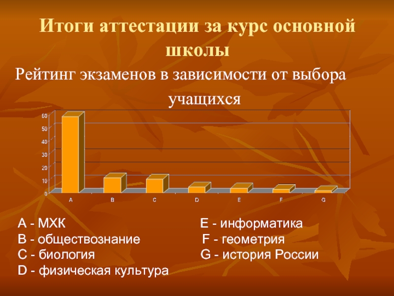 Рейтинг экзаменов в зависимости от выбора учащихся