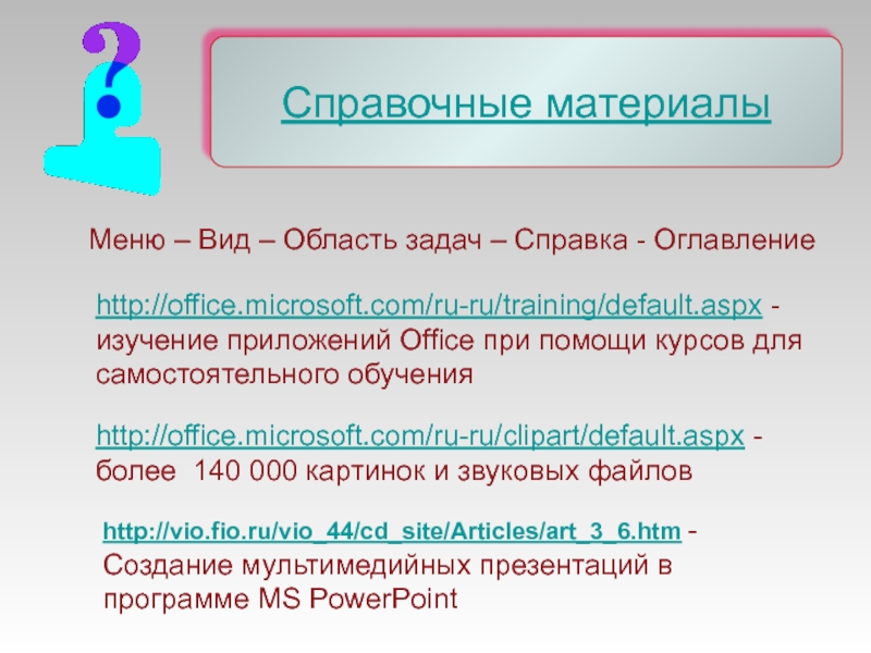 http://vio.fio.ru/vio_44/cd_site/Articles/art_3_6.htm - Создание мультимедийных презентаций в программе MS PowerPoint