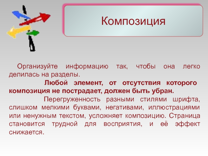 Композиция есть расположение, составление и объединение отдельных элементов в одно целое. Помимо самих элементов, в нее входит и их ракурс, освещение, тональность, контраст, тени, а так же ряд специфических эффектов.