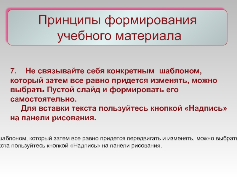 7. Не связывайте себя конкретным шаблоном, который затем все равно придется изменять, можно выбрать Пустой слайд и формировать его самостоятельно.