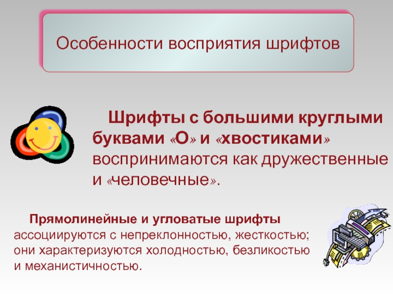 Прямолинейные и угловатые шрифты ассоциируются с непреклонностью, жесткостью; они характеризуются холодностью, безликостью и механистичностью.