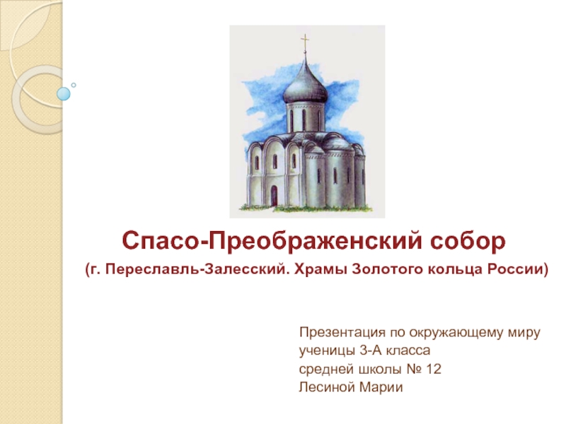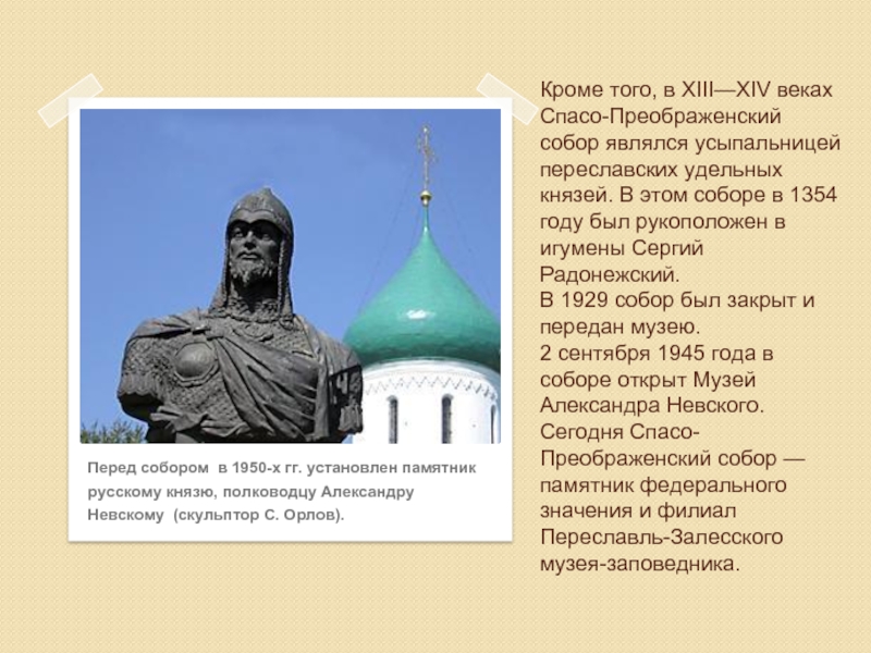 Спасо-Преображенский собор в Переславле-Залесском, XII век. На переднем плане памятник Александру Невскому.