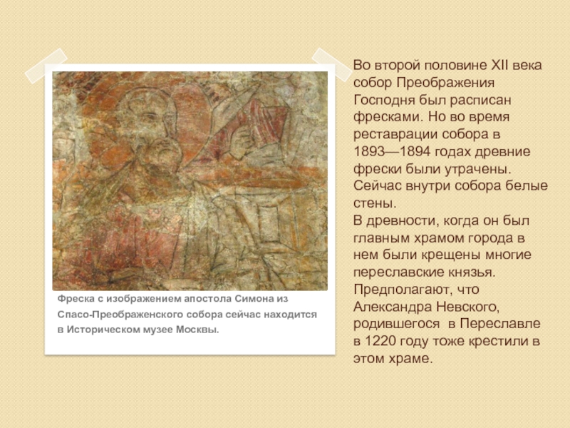 Фреска с изображением апостола Симона из Спасо-Преображенского собора сейчас находится в Историческом музее Москвы.