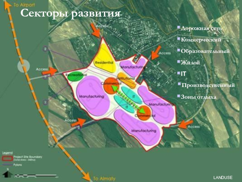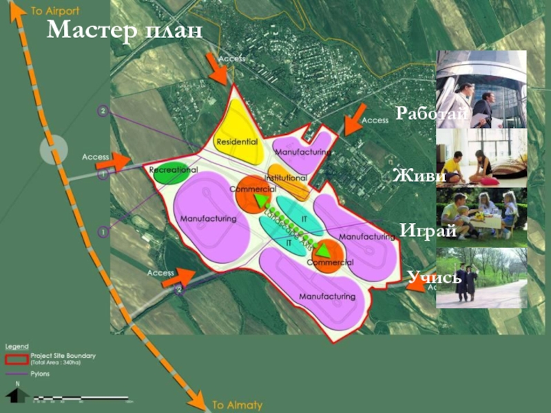 Бизнес центр: гостевые комнаты, фитнес клуб, кафетерий, рестораны, бассейн, спортивные площадки, кинотеатр, салон красоты, универмаг