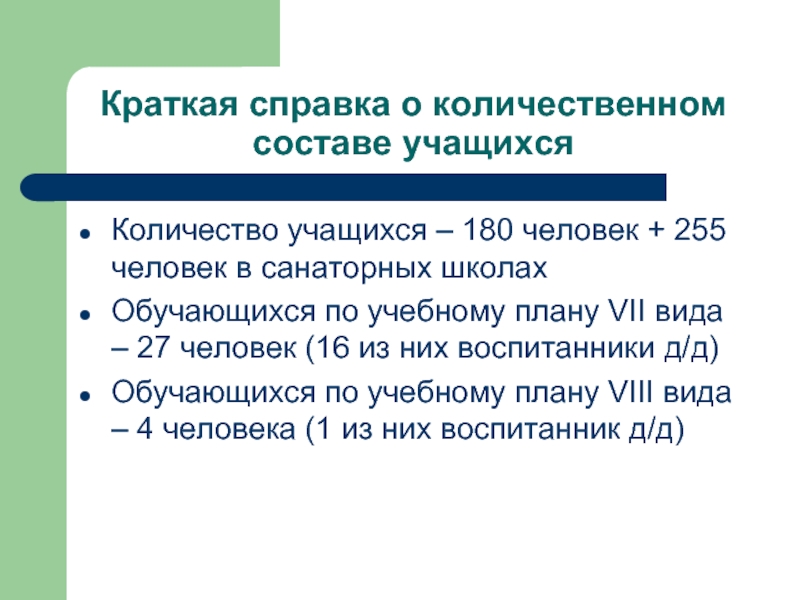 Обучающихся по учебному плану VII вида – 27 человек (16 из них воспитанники д/д)