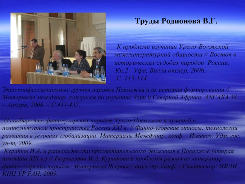 (Родионов В.Г. К истории сложения и развития сравнительного литературоведения народов Урало-Поволжья // Проблемы сравнительного и сопоставительного литературоведения Поволжья: Сб. науч. ст. - Чебоксары: «Новое Время», 2010. – С. 3-10).