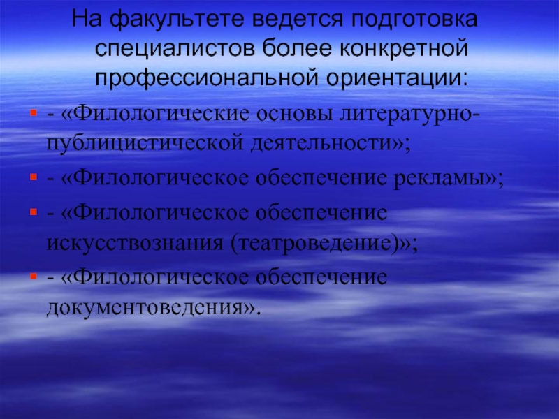 На факультете ведется подготовка специалистов более конкретной профессиональной ориентации: