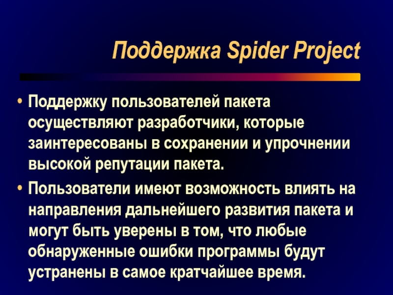 В этой презентации мы не только опишем основные характеристики пакета Spider