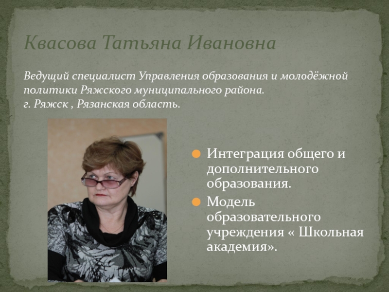 Ведущий специалист Управления образования и молодёжной политики Ряжского муниципального района.