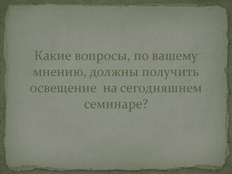 Слайд 9Какие вопросы, по вашему мнению, должны получить освещение на сегодняшнем семинаре?