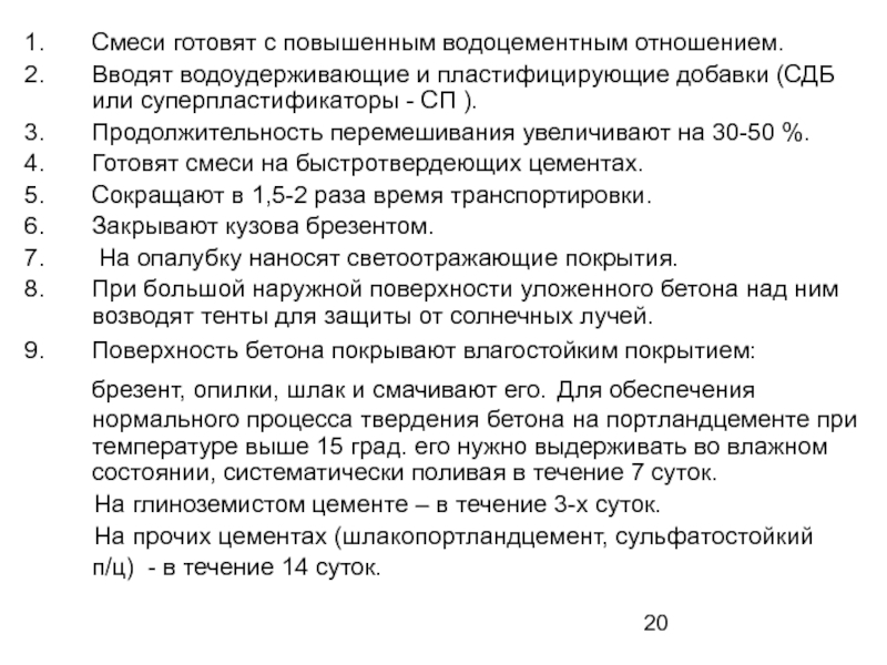 Слайд 19Особенности возведения монолитных конструкций в условиях жаркого климата