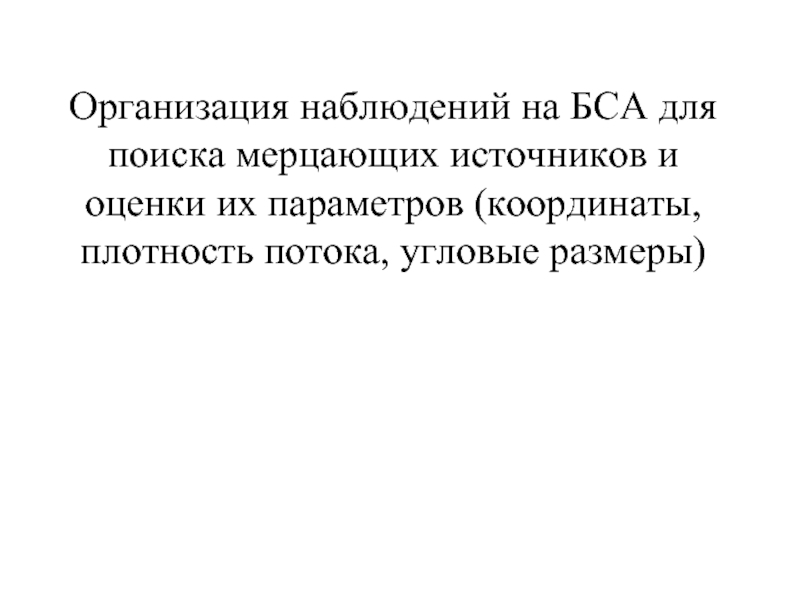 Слайд 24Организация наблюдений на БСА для поиска мерцающих источников и оценки их