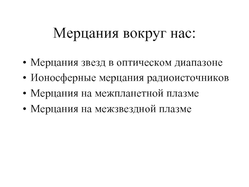 Мерцания будут наблюдаться, если угловой размер источника излучения сравним или меньше характерного масштаба неоднород-ностей