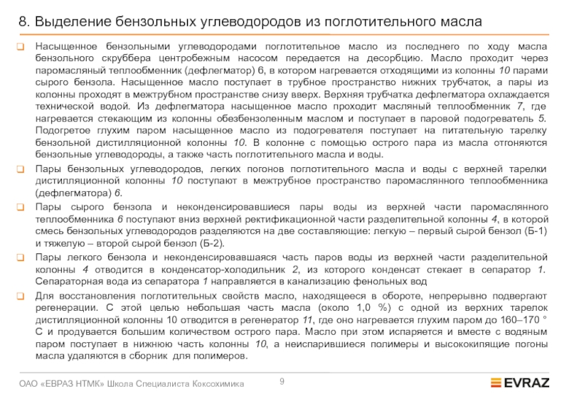 1,2 – секции абсорбера; 3,5 – промежуточные емкости; 4,6–8 – насосы; 9 – вакуум-кристализатор;