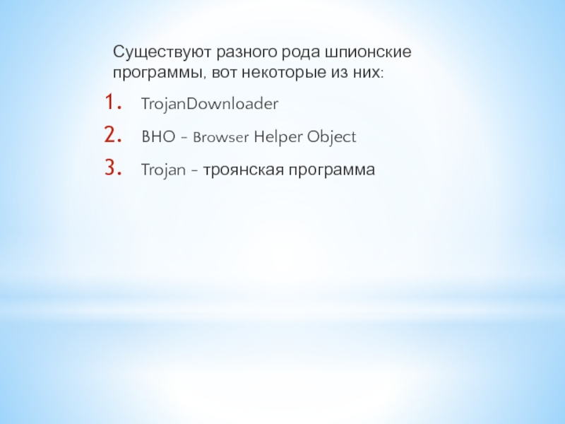 Слайд 9Существуют разного рода шпионские программы, вот некоторые из них: