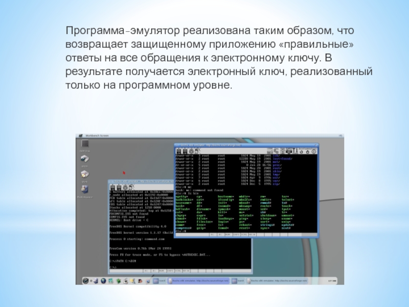 Слайд 5Программа-эмулятор реализована таким образом, что возвращает защищенному приложению «правильные» ответы на